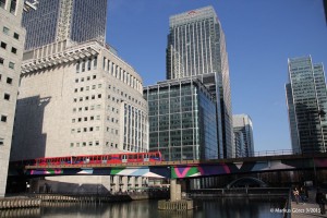 zwischen Heron Quays und Canary Wharf. Vom Bahnsteig Heron Quays aus aufgenommen... Hier sind die Haltestellenabstände wirklich nur so kurz...