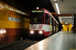 zwischen den Haltestellen Vinckeweg und Albertstraße auf der Linie 901. Die Brücke überquert hier im Hafen die Ruhr...