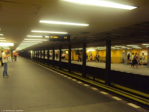Auch hier wieder die Frage: Liebe BVG, was soll der Scheiß? Ein weiterer für seine Epoche typischer U-Bahnhof, der hier einem geradezu fragwürdig neutralen Standard angepasst wird. |