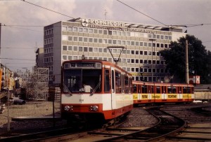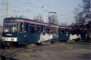 Wagen 2037 steht im Januar 1982 an der Haltestelle Buchheim, Frankfurter Straße |