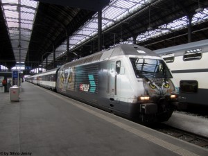 Die Helvetia-Versicherungen werben mit dem Schweizer-Tennisass Roger Federer auf dieser Re 460. Dies kam zustande, da die Helvetia die frühere National-Versicherungen übernahm. Bei der National stand Federer unter Vertrag, und dieser Werbevetrag wurde mit dem neuen Besitzer nun weitergeführt. |