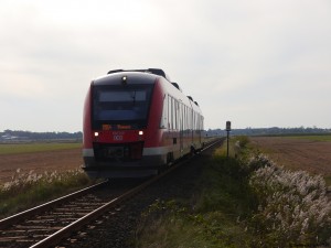 Kommt gerade aus St. Peter-Ording und fährt dann auch in Kürze wieder zurück dorthin. Auf dieser Strecke werden die Züge em Begriff "Schienenbus" wirklich mehr als gerecht...
