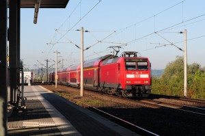 RE1 nach... Ja, wohin eigentlich? Die Lok weiß es scheinbar auch nicht. |