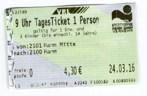 Ein Tagesticket des GVH aus Hannover, gelöst im Jahre 2015 |