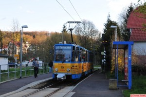 Tatra 301 zwischen den Haltestellen Reinhardsbrunn Bahnhof und Friedrichroda.