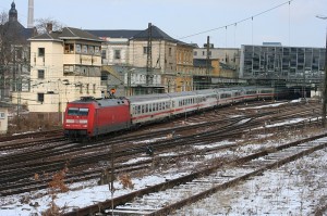 Die 101 055-2 kurz nach der Einfahrt in Kufstein mit dem IC von Mailand -München. |