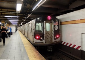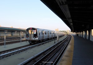 Die andere Seite des breiten Mittelbahnsteigs. Ein R160 als N-Train nach Coney Island-Stillwell Avenue über 60th Street Local, Broadway Express, Brooklyn 4th Avenue Express und West End Local. |