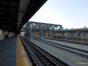 Uebrigens, das Bild entstand an der Seite des Bahnsteigs, wo die aus Brooklyn ankommenden Zuege enden und Kopfwechsel machen. Der Tunnel selbst endet da naemlich nicht, die Gleise fuehren weiter zu den Aussenbahnsteigen der Haltestelle Queens Plaza. Von dort kann man dann ueber Jackson Avenue weiter nach Forest Hills und Jamaica fahren. Bis 2010 wurde das im Berufsverkehr auch gemacht, aber durch notwendig gewordene Sparmassnahmen wurde die Linie permanent bis Court Square zurueckgezogen. |