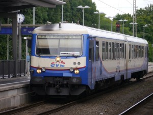 Im Auftrag von DB Regio betreibt die EVB die Linie RB76 zwischen Rotenbürg (Wümme) und Verden (Aller), am Wochenende weiter bis Minden (Westfalen). Zum Einsatz kommen hier die 628er der EVB, die entweder in rosa-weiß oder blau-beige lackiert sind. |