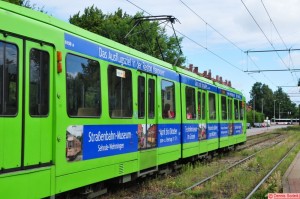 Tw 6159 mit Teilreklame für das Straßenbahnmuseum in Sehnde bei Hannover.