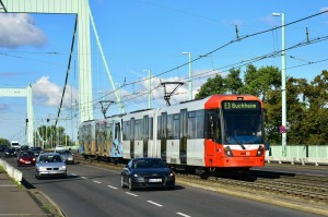5110 auf der Mülheimer Brücke als umgeleitete Linie 3 mit dem Fahrtziel "Dom/Hbf" am 08.10.2016. |