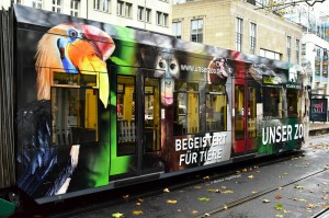 Niederflurwagen 4063 wurde eine neue Ganzgestaltung "Unser Zoo" angebracht nachdem die alte Ganzreklame "150 Jahre Kölner Zoo" entfernt wurde. Anbei sechs Fotos die während der Präsentation des Fahrzeuges auf dem Neumarkt am 18.11.2016 entstanden sind. |