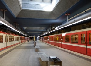 Einer der jüngsten Bahnhöfe des Netzes, die U3 endete bis 2011 zwei Stationen in Maxfeld. Vorbereiteter Kreuzungsbahnhof, wahrscheinlich, falls irgendwann mal die oben fahrende Straßenbahn durch eine U-Bahn ersetzt werden soll. |