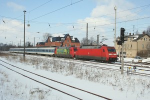 Schönes Wetter brachte der IR 2281 heute (13.3.06) aus Berlin mit. Nur der Schnee ist von hier ;-) |
