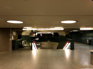 Die Treppe zum oberen Bahnsteig. Hier funktioniert die Rolltreppe sogar noch. Ich feiere übrigens die Science-Fiction-artige Treppenbeleuchtung extrem. |