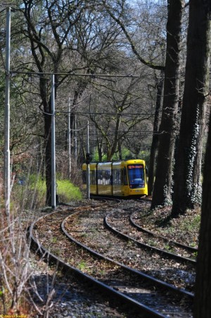 Im Wald sind die Licht- und Schattenspiele ja immer etwas ganz besonderes, vor allem wenn die Straßenbahn trotz der Bäume von der Sonne voll angestrahlt wird :)