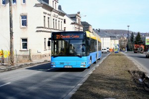 auf der Frankenberger Straße kurz vor der Bahnbrücke.