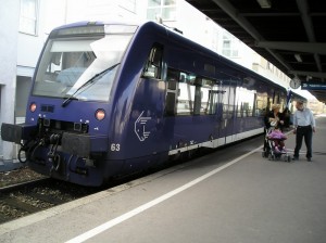 Als BOB hier in Ravensburg wegen Bauarbeiten auf Gleis 2. Nach dem IRE (links) fährt diese Bahn um :12 wieder Richtung Friedrichshafen zurück. |