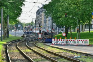 Der aktuelle Bauzustand der Verlängerung der Linie 3 zum Görlinger-Zentrum auf dem Militärring am 03.06.2018. Die Tage der alten Wendeanlage am Ollenhauerring sind gezählt. |
