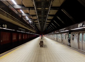 Die hohe Decke der Station ließ Platz für eine ungewöhnliche Lösung: Der Weg zu einem der Ausgänge ist durch eine Hängebrücke über dem Gleis nach Jamaica realisiert worden. Dadurch erhält die Station einen großen Balkon. In Verbindung mit den ehemaligen Fenstern sicher noch besser. |