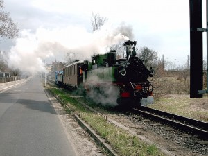 Kurz vor der Gleiskreuzung mit der Straßenbahn. |
