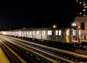 Sollte nur noch ein paar Stunden hier fahren. Nachts fährt der M train zwar, aber nur als Shuttle zwischen Myrtle Avenue und Metropolitan Avenue. Mit R160-Kurzzügen. |