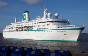 Am 12.11.2018 liegt die AIDAmar bei Sonnenuntergang im französischen Le Havre und wird abends dann in Richtung Southampton weiterfahren. |