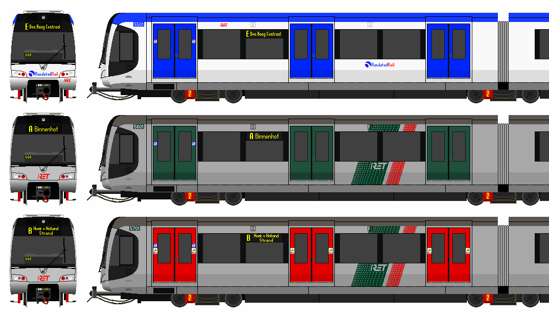 Land: Niederlande Betrieb: Rotterdamse Electrische Tram "RET" Hersteller: Bombardier Typ: SG2/1 Anzahl: 18 Angeschafft: 2002 Nummern: 5401 - 5418 |