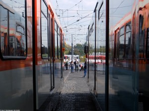 So sahen sie aus bei den Stadtwerken: Rot-weiße U2-Wagen - abgesehen von den Nachzüglern 400 bis 406 - und orange-beige U3-Wagen, die man aber ausschließlich auf der B-Strecke gefunden hat. Streng genommen ließen sich die Strecken nach Wagenfarben auseinanderhalten. |