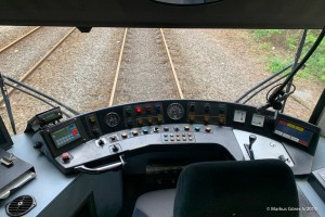 Der Wagen erreicht gleich die erste Haltestelle auf dem knapp 40 Minuten langen Weg von Halfway ins Stadtzentrum. Der Fahrer des Wagens 104 im Hintergrund darf dafür gleich seine Pause genießen. |