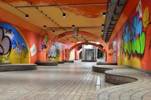 Mega-Haltestelle mit 4 Gleisen und 120m-Bahnsteigen im Zentrum in Essen. Hier halten Straßenbahnen von nicht mal 30m länge. Das wars. Die Haltestelle wurde gerade etwas aufgehübscht.