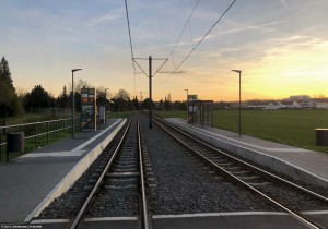 Exemplarisch für die Architektur der meisten Straßenbahnhaltestellen in Mainz. |