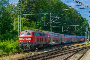 Sandwich-218er Regionalbahn von Füssen auf dem Weg nach München.