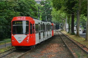 Der 20. fertig sanierte B-Wagen 2418 (ex 2192) auf der Hahnenstraße während seinem 2000-km-Test am 15.07.2019. |