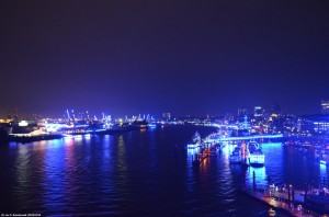 Den besten Ausblick hatte man natürlich mal wieder vom umfunktionierten Kaispeicher A. Diese Kräne stehen in Blickrichtung Südosten. |