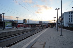 Eigentlich sind die Wände der Station mit Alu-Wellblech verkleidet. Mittlerweile werden diese immer öfter durch Airline-Werbung verdeckt. Wobei die Lufthansa-Werbung dabei zumindest noch gut aussieht. |