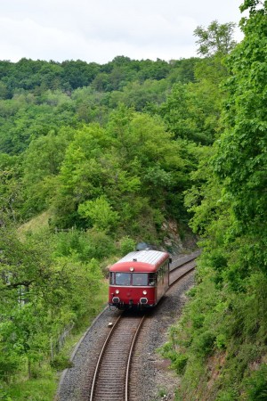die EVG befährt Mittwochs, Samstags, Sonntags und Feiertags im Stundentakt mit Schienenbussen die Strecke der Kasbachtalbahn. Hier beim Beginn der Fahrt nach Kalenborn.