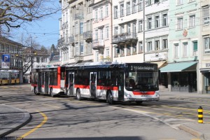 Die Ur-MAN von 2007 in St.Gallen. Als damals die ersten MAN nach St.Gallen geliefert wurden, verkehrten sie bloss auf 2 Linien. Unterdessen wurden die 10 A21 durch weitere MAN A21 als Zugfahrzeuge für den Anhängerbetrieb ergänzt |