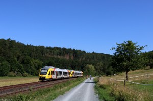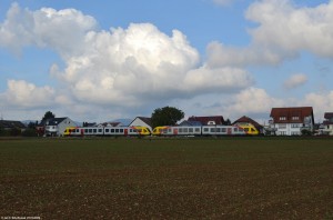 Die HLB brauchte für die Frankfurter AKN mal wieder Hilfe - fahrzeugseitig. So ist momentan mit 257 ein 648 der 3-Länder-Bahn auf den Vorortbahnen unterwegs, in diesem Fall als RB12 nach Königstein. Mit Steckschild, denn vom Rhein-Main-Gebiet haben die 3-Länder-Bahnen keine Ahnung. |