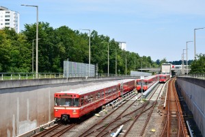 Hinter der Abstellanlage befindet sich der Bahnsteig der Haltestelle Langwasser Nord. Der oberirdische Abschnitt der U1 zwischen Messe und Scharfreiterring bietet sehr viele gute Fotomöglichkeiten.