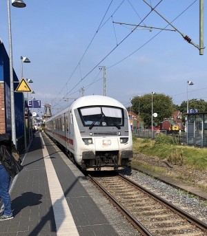 Die klassischen IC-Wendezüge werden ja leider auch immer seltener. Umso schöner, hier nochmal ein 5 Wagen starkes Exemplar zu sehen, zur Örtlichkeit passend von einem Ost-Steuerwagen angeführt. |
